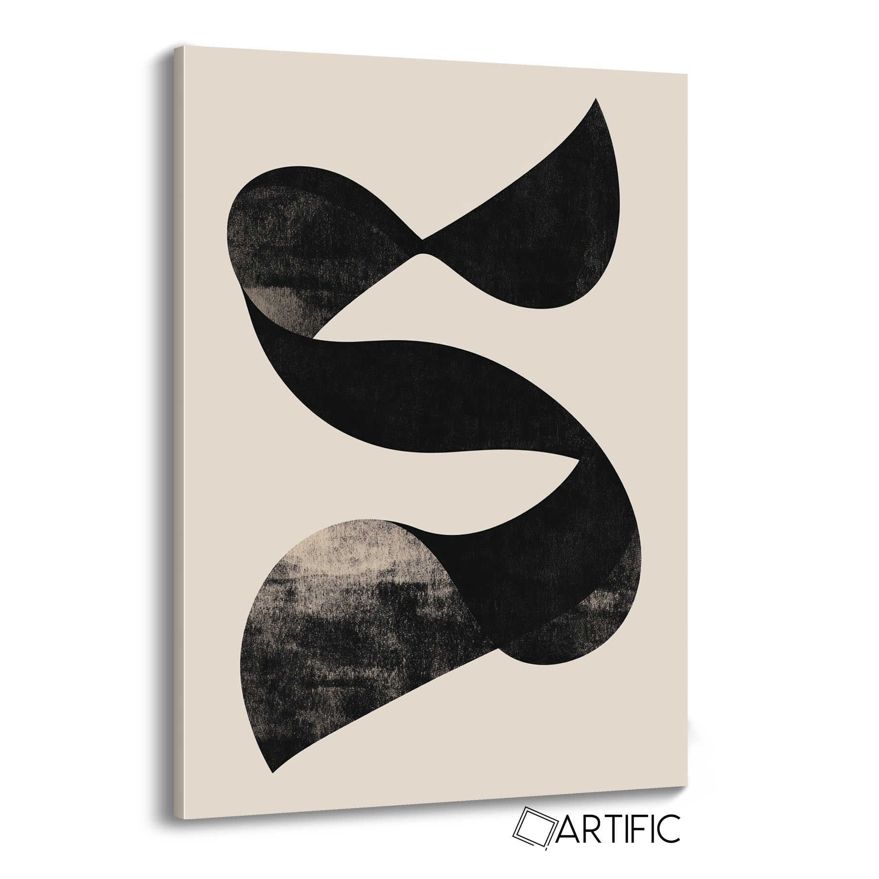 Esta obra de arte abstracta presenta una composición de formas curvas y orgánicas en tonos monocromáticos sobre un fondo claro. Con un estilo minimalista y elegante, las líneas fluidas y las áreas sombreadas añaden profundidad y textura, evocando una sensación de movimiento suave.